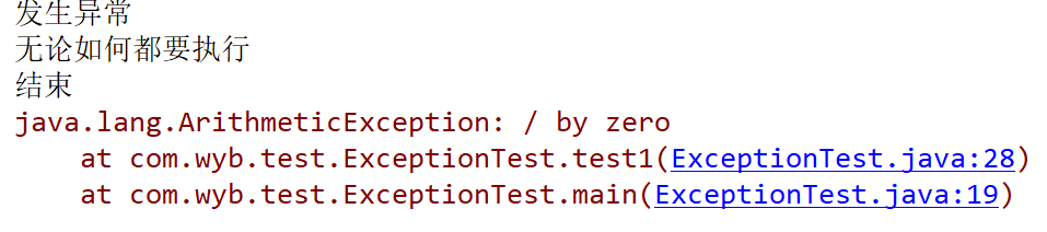 }②抓住异常 分为try-catch-finally、throwstry-catch-finally 为真正处理异常 实例:
