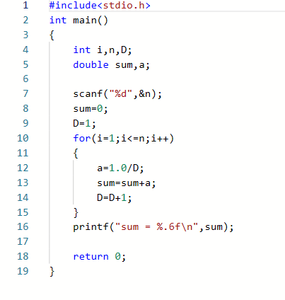 本题要求编写程序,计算序列 1 + 1/2 + 1/3 + ... 的前N项之和。