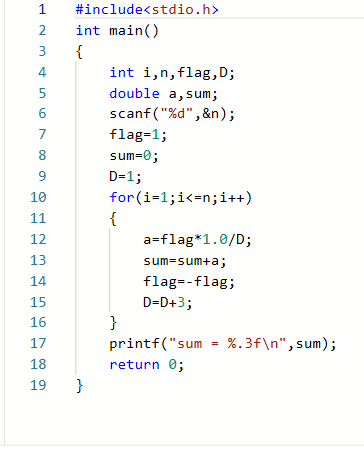 2.计算序列 1 - 1/4 + 1/7 - 1/10 + ... 的前N项之和等题目类型也使我们对for的使用更加熟练。