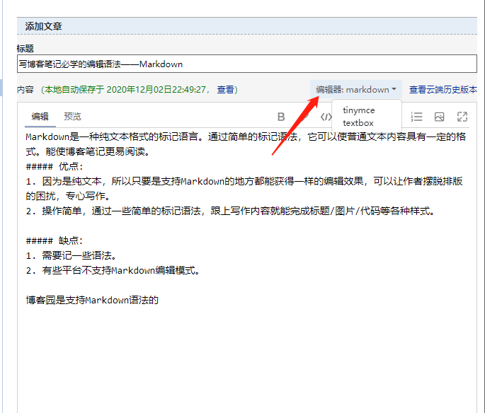 为了写作方便,我们可以在设置页面设置默认编辑器为Markdown