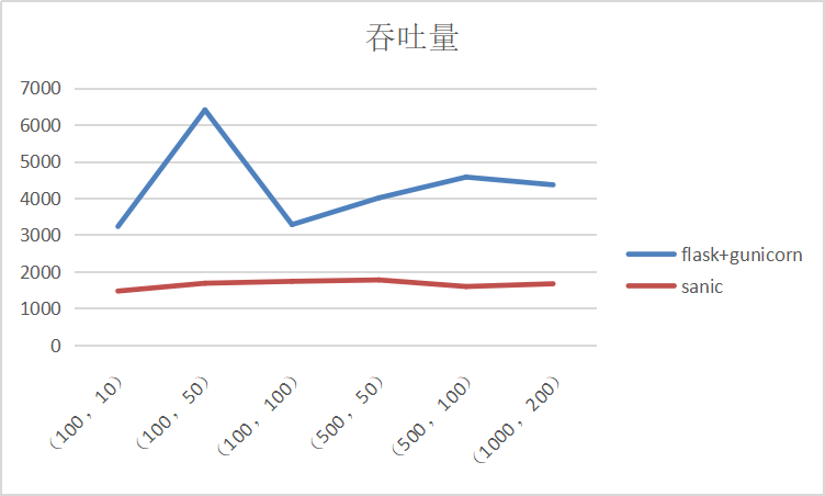 图片表明sanic+uvicorn的吞吐量明显的低于flask配合gunicorn;