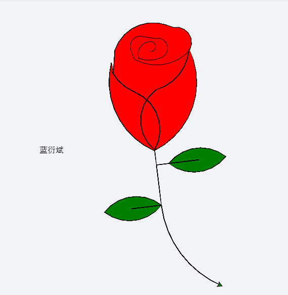 import turtle # 设置初始位置 turtle.penup() turtle.left(90) turtle.fd(200) turtle.pendown() turtle.right(90) # 花蕊 turtle.fillcolor("red") turtle.begin_fill() turtle.circle(10,180) turtle.circle(25,110) turtle.left(50) turtle.circle(60,45) turtle.circle(20,170) turtle.right(24) turtle.fd(30) turtle.left(10) turtle.circle(20,110) turtle.fd(20) turtle.left(40) turtle.circle(90,70) turtle.circle(30,150) turtle.right(30) turtle.fd(15) turtle.circle(80,90) turtle.left(15) turtle.fd(45) turtle.right(165) turtle.fd(20) turtle.left(155) turtle.circle(150,80) turtle.left(50) turtle.circle(150,90) turtle.end_fill() # 花瓣1 turtle.left(150) turtle.circle(-90,70) turtle.left(20) turtle.circle(75,105) turtle.setheading(60) turtle.circle(80,98) turtle.circle(-90,40) # 花瓣2 turtle.left(180) turtle.circle(90,40) turtle.circle(-80,98) turtle.setheading(-83) # 叶子1 turtle.fd(30) turtle.left(90) turtle.fd(25) turtle.left(45) turtle.fillcolor("green") turtle.begin_fill() turtle.circle(-80,90) turtle.right(90) turtle.circle(-80,90) turtle.end_fill() turtle.right(135) turtle.fd(60) turtle.left(180) turtle.fd(85) turtle.left(90) turtle.fd(80) # 叶子2 turtle.right(90) turtle.right(45) turtle.fillcolor("green") turtle.begin_fill() turtle.circle(80,90) turtle.left(90) turtle.circle(80,90) turtle.end_fill() turtle.left(135) turtle.fd(60) turtle.left(180) turtle.fd(60) turtle.right(90) turtle.circle(200,60) # 名字 printer = turtle.Turtle() printer.hideturtle() printer.penup() printer.back(200) printer.write(" 蓝衍斌", align="center", font=("黑体", 12, "normal"))