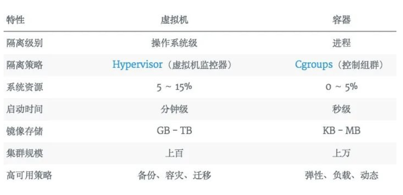 性能开销小, VM 通常需要额外的 CPU 和内存来完成 OS 的功能,这一部分占据了额外的资源。
