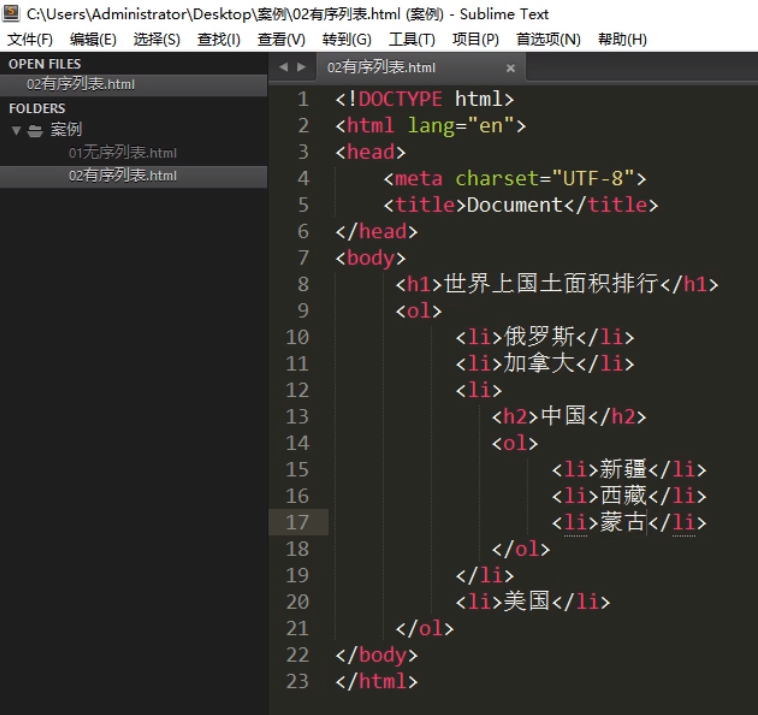 在使用有序列表时需要搭配两种标签一起使用,分别是 <ol> 和<li>