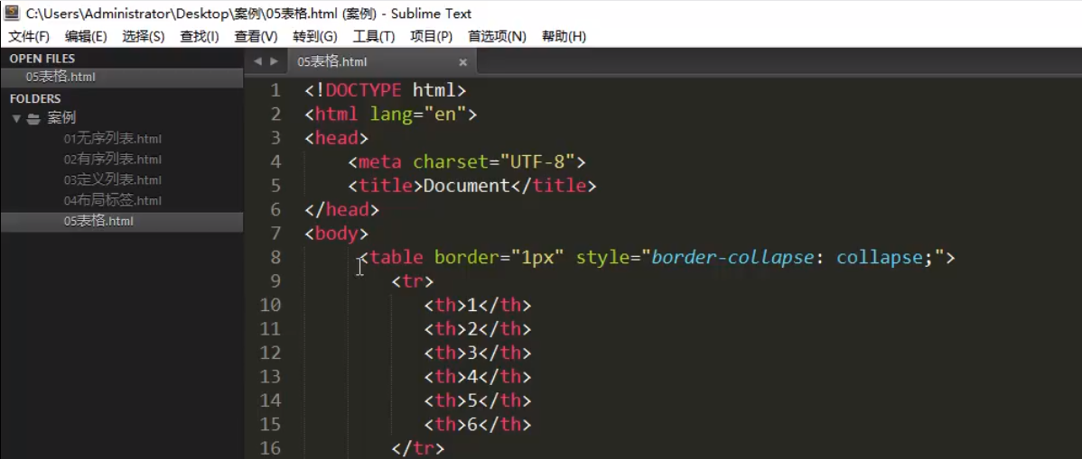 - th : 英文 table head 表头单元格,可以替换 td 的位置, th 拥有默认样式(文字居中、字体相对较大)