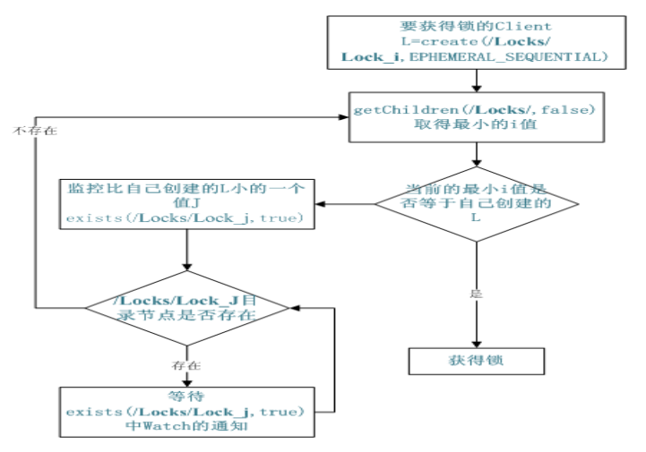 共享锁在同一个进程中很容易实现,但是在跨进程或者在不同 Server 之间就不好实现了。Zookeeper 却很容易实现这个功能,实现方式也是需要获得锁的 Server 创建一个 EPHEMERAL_SEQUENTIAL 目录节点,然后调用 getChildren方法获取当前的目录节点列表中最小的目录节点是不是就是自己创建的目录节点,如果正是自己创建的,那么它就获得了这个锁,如果不是那么它就调用 exists(String path, boolean watch) 方法并监控 Zookeeper 上目录节点列表的变化,一直到自己创建的节点是列表中最小编号的目录节点,从而获得锁,释放锁很简单,只要删除前面它自己所创建的目录节点就行了。