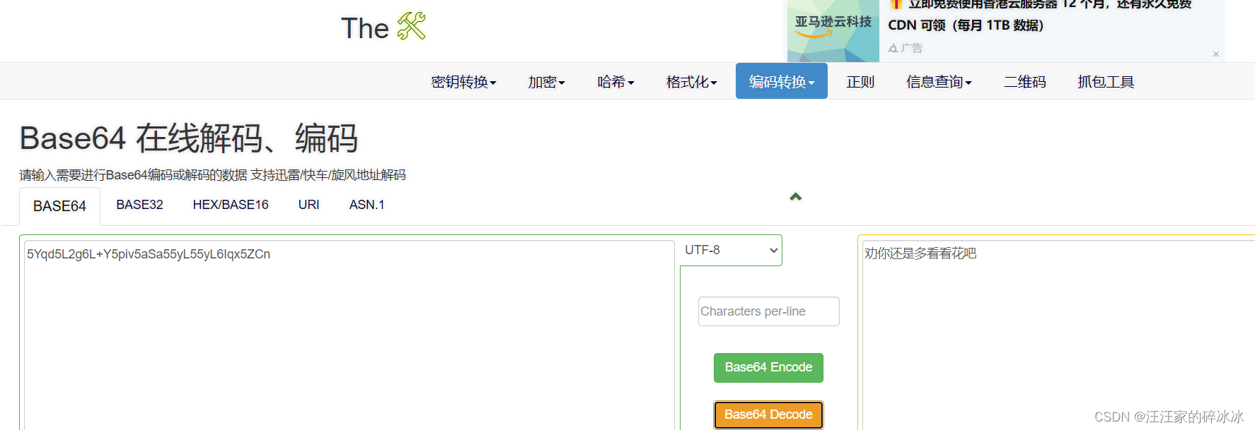 文本里面有一段base64加密的字符,我们尝试套娃式解码,得到最后内容,emm.....,我想打人