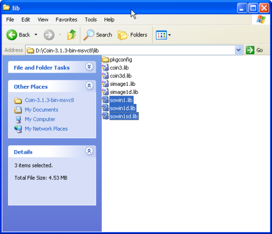 2)建立好目标文件夹,把下载到的rar文件解压到目标文件夹(例如D:\Coin-3.1.3-bin-msvc8,以下称之为$(COINDIR));