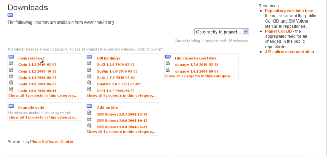 截至到目前(2010年7月),Coin3D的最新版本已经是Coin 3.1.3版本了。可以到这里下载Coin 3.1.3(http://www.coin3d.org/lib/coin/releases/3.1.3 )。从Coin3D官方网站的下载页面上可以看出,Coin3D由Coin、GUI bindings、File import/export libs、Add-on libs等几部分组成。GUI bindings针对不同的GUI环境分化成多个组件,而File import/export libs又包含simage、Profit和Dime。