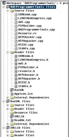 该WorkSpace下有3个project,我只展开了一个,因为文件比较多,全部展开太长,我采用了很典型的存放方式,一个project下有两个目录,一个是Source Files,一个是Header Files,一个放.cpp文件,一个放.h文件,当然Source Files中除了cpp,通常还有rs(Resource Script)文件,如果写COM,那还有idl文件,总之需要编译的,都放在Source Files目录下。我们还可以看到,需要编译的文件的图标有个向下的箭头。这样分开目录来存放而不是全部都放在同一个目录下的好处是便于查看。OK,我承认这并没有什么技术含量,但如果组织得好,能给你开发带来些便利。