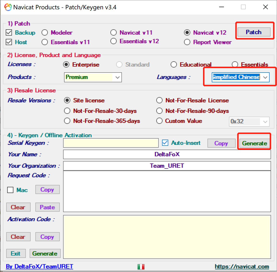 1) Patch勾选Backup、Host和Navicat v12