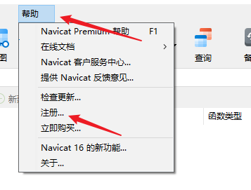 然后打开Navicat Premium 16,点击帮助–>注册