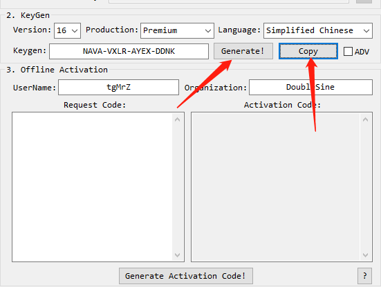 4) Keygen / Offline Activation中Your Name和Your Organization可以任意填写或者默认