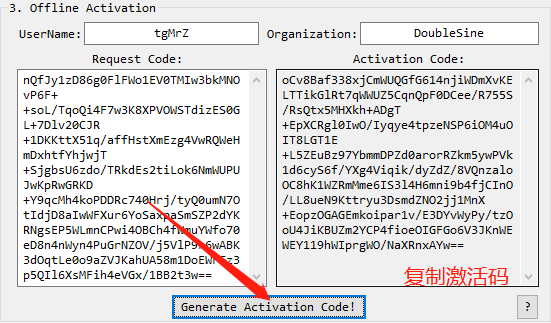 点击 Generate Activation Code进行生成激活码.复制激活码.