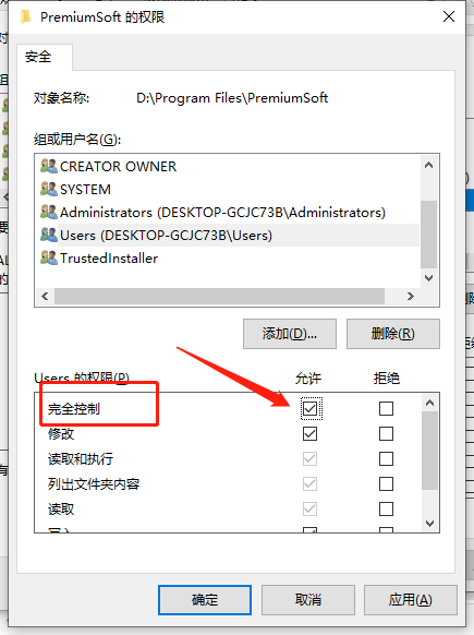 点击完全控制,允许.