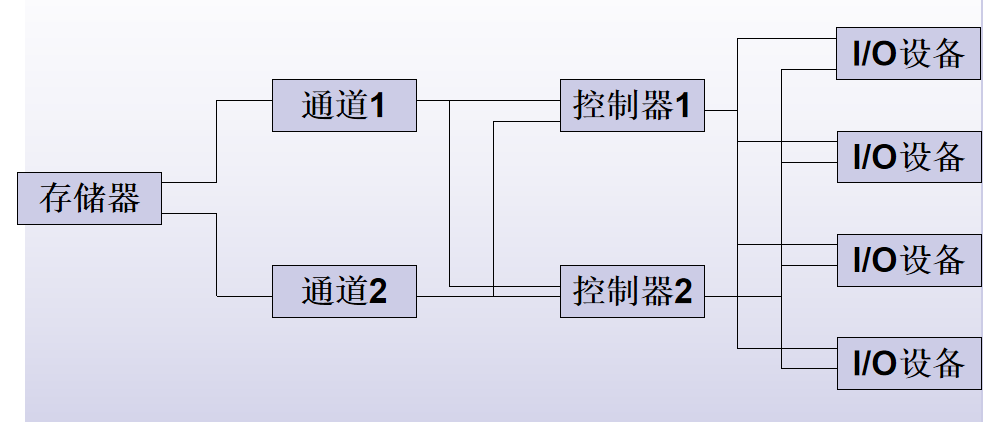 包括: 需要用于输入、输出和存储信息的设备; 需要相应的设备控制器; 控制器与CPU连接的高速总线; 有的大中型计算机系统,配置I/O通道;