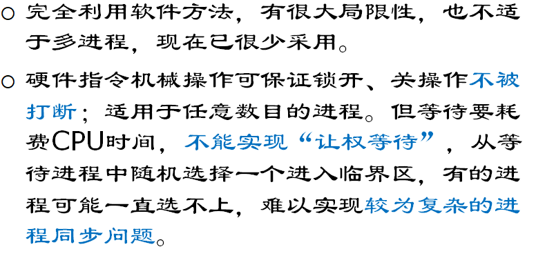有硬件同步机制和软件方法,都有各自很大缺点