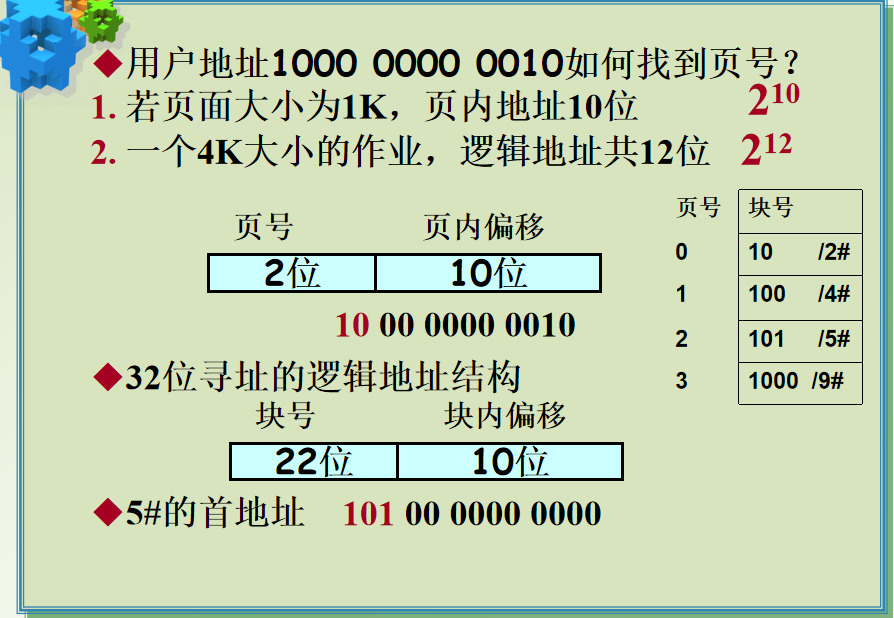 规律:作业相对地址在分页下不同位置的数有一定的意义结构:页号+业内地址(即页内偏移)
