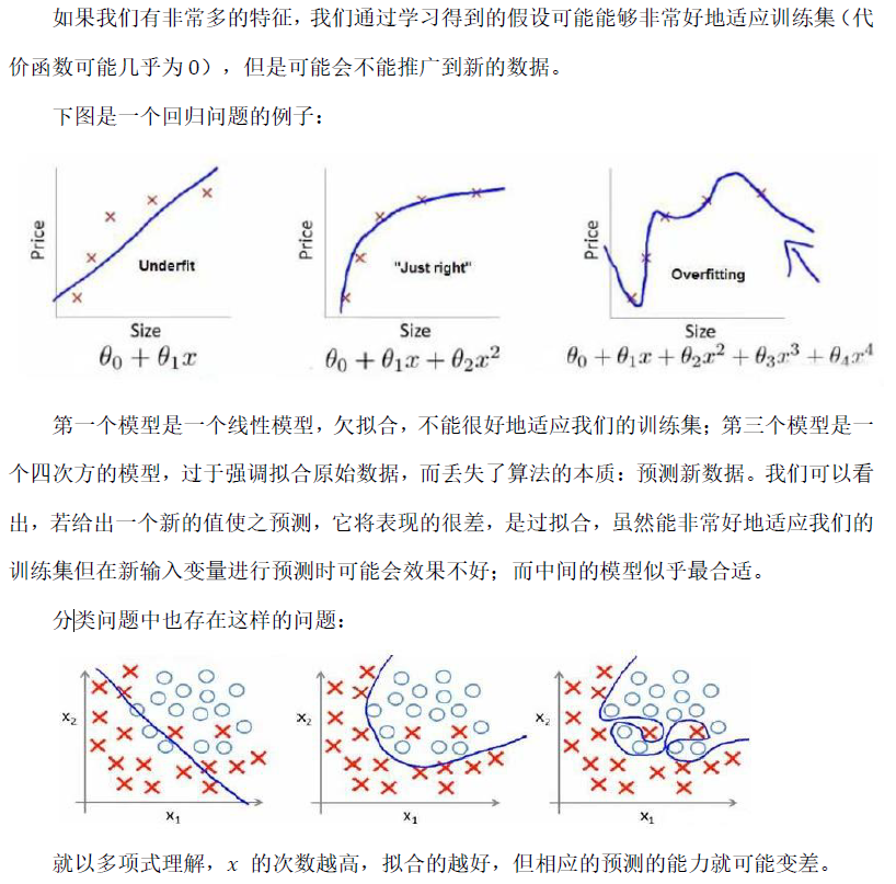 判断是否过拟合:70%作为训练集,30%作为测试集。对于线性回归,使用代价函数计算误差;对于逻辑回归,可以使用代价函数计算误差,也可以计算误分类比率