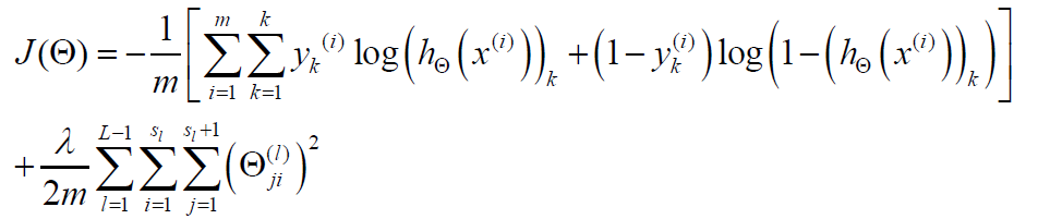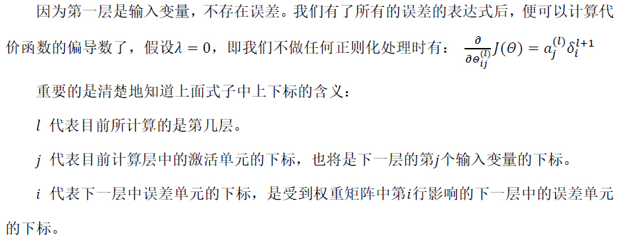 其中的sl+1下错了应为下标,表示第l+1层的单元数,正则化项为所有theta,不包括偏置单元的参数