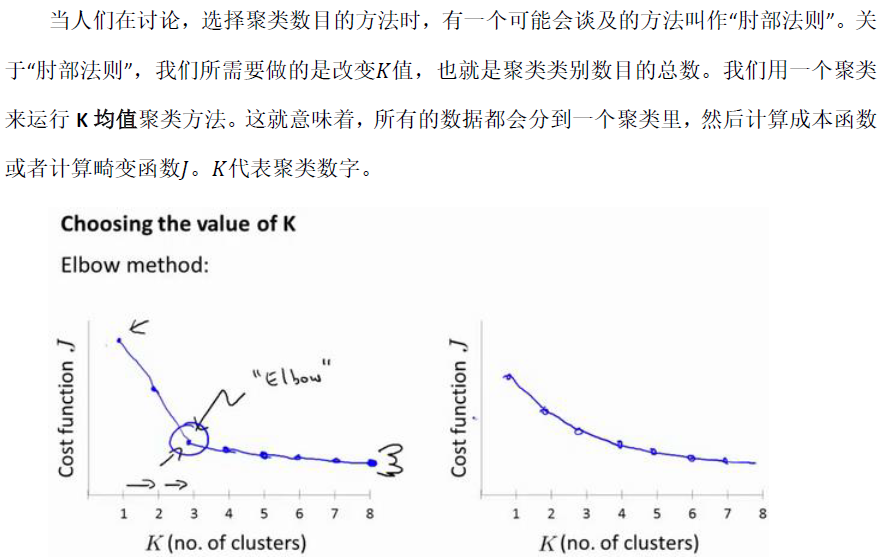 为了得到更好的分类,多次随机初始化,选择代价函数较小的那个分类决策。通常在k不超过10时,随机初始化