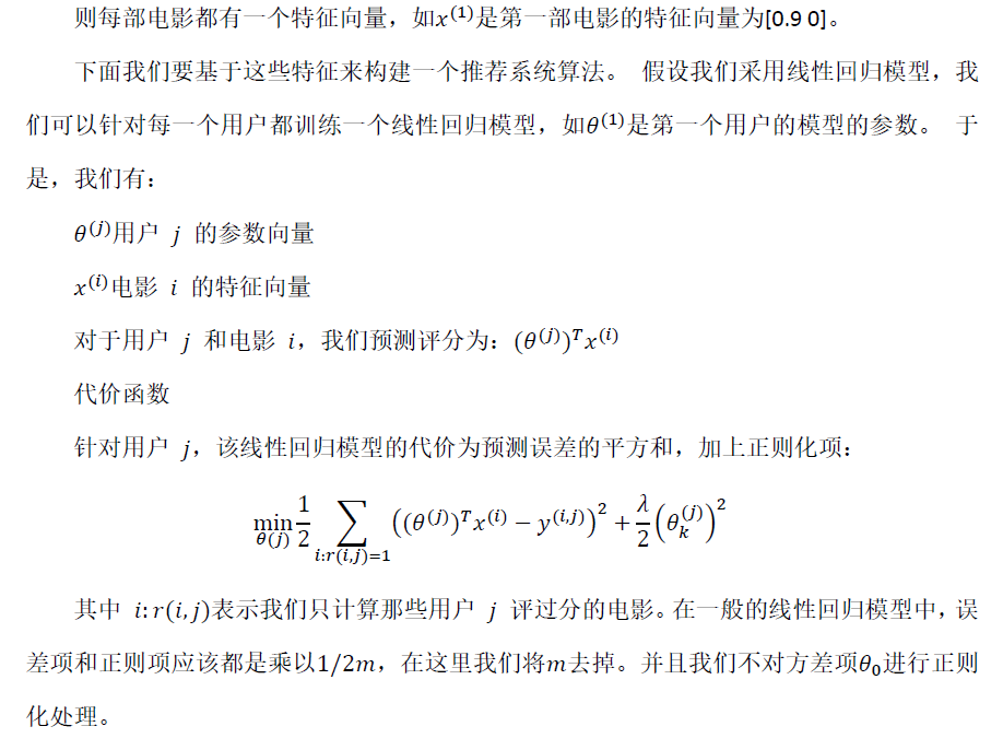 已知电影的特征,训练用户的参数,然后预测用户对电影的评分。