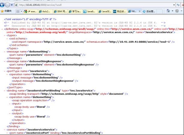 在浏览器中输入http://10.41.109.41:8888/service/?wsdl