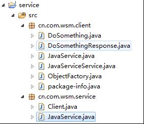 此时返回工程包视图,可以看到,刚才的操作生成了许多类,这些类在指定的cn.com.wsm.client包中