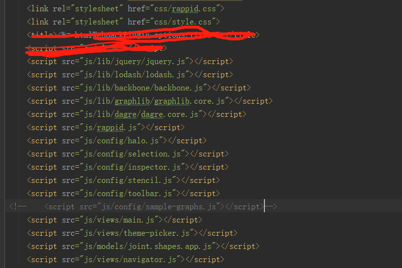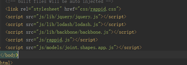 下面时官方给出的入门demo例子,可以看到 JointJS 依赖jquery、lodash、backbone,使用 JointJS 只需要引入joint.css和joint.js即可。定义一个div用来盛放绘制的图形。
