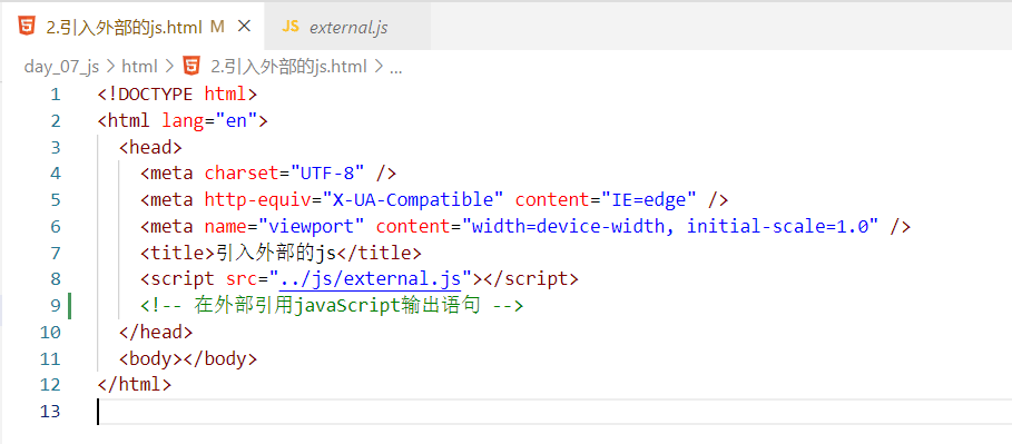 创建javaScript的输出文件,然后在html文件中使用链接引用