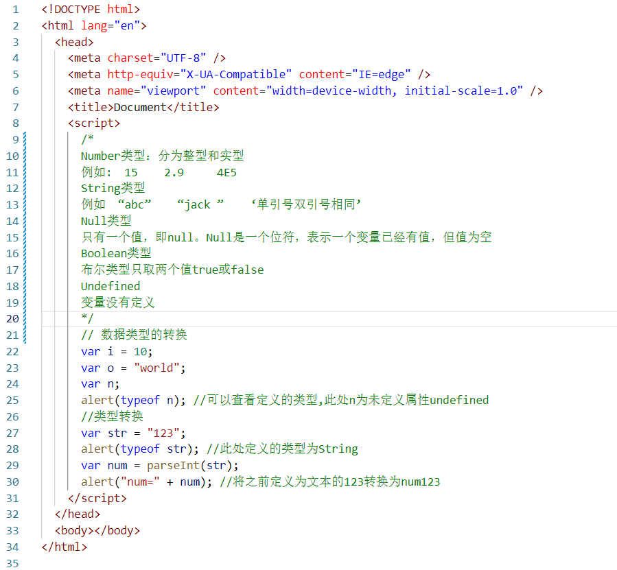 数据类型分为5类,Number,String,Null,Boolean,Undefined.