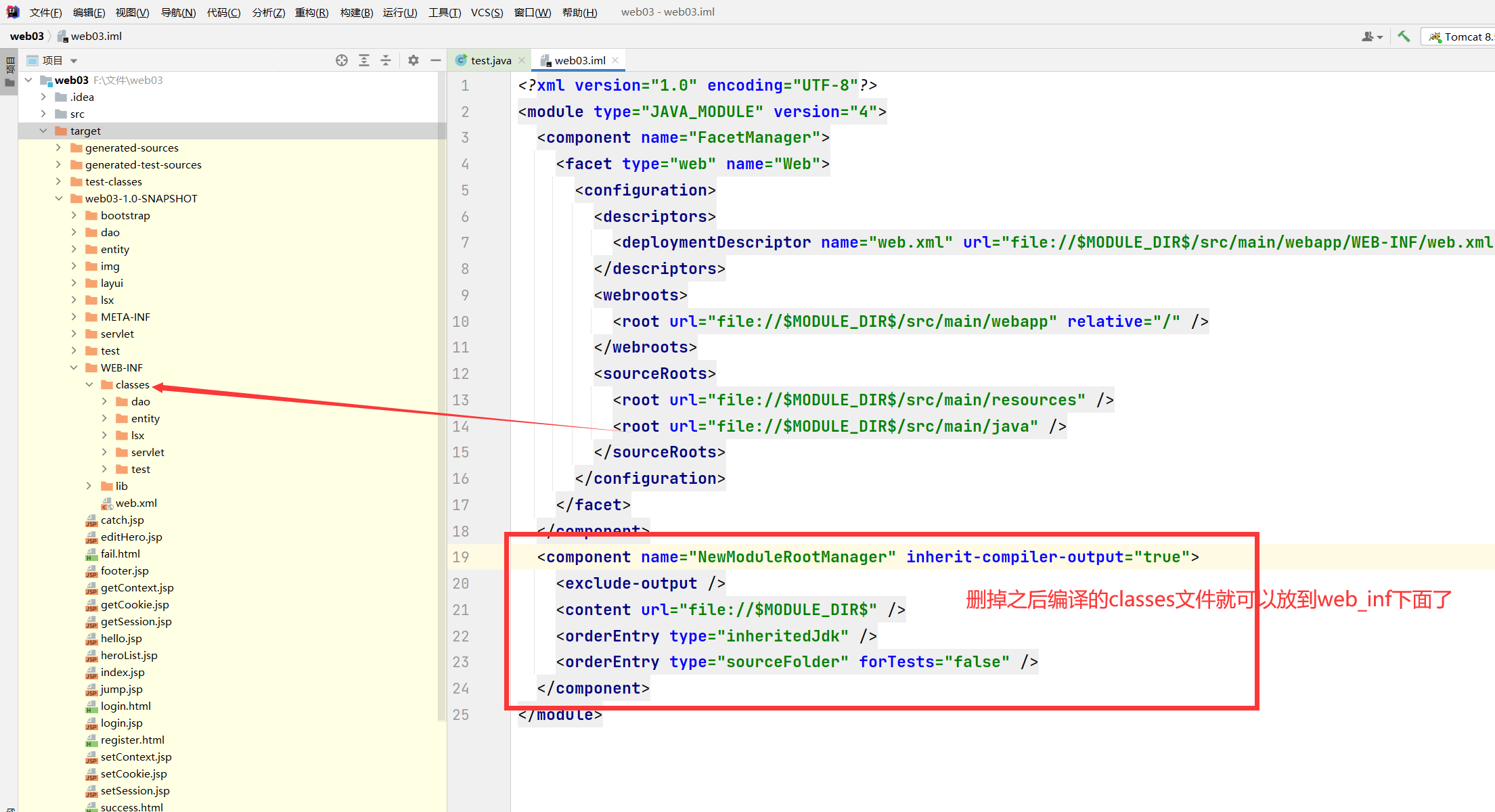 编译之后classes没有放到web_INFO下面导致发布项目没有java的文件用不起servlet 还会导致找不到主程序