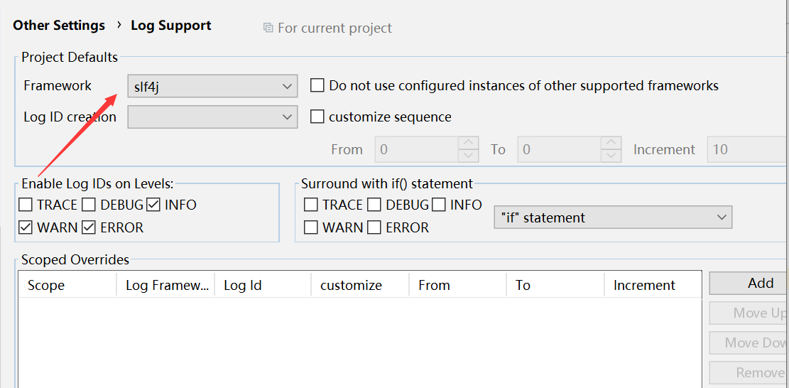 2、设置settings -other settings 点开logsupport,framework选择slf4j