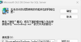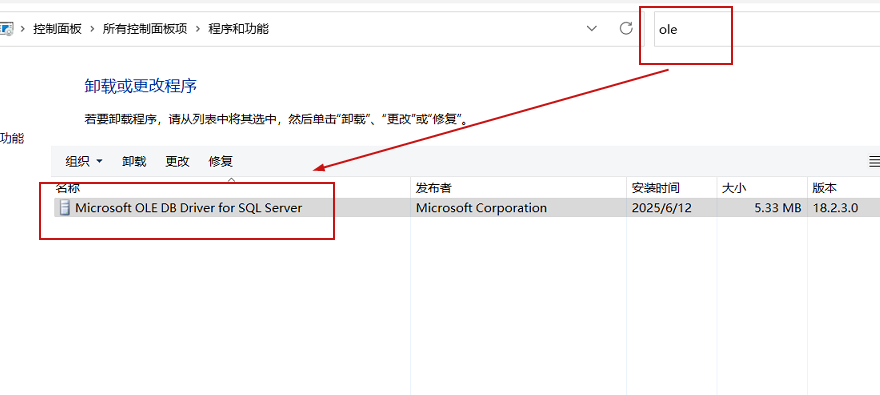 你需要在控制面板中添加删除程序中,搜索 ole ,找到Microsoft OLE DB Driver For SQL Server,卸载它,再安装