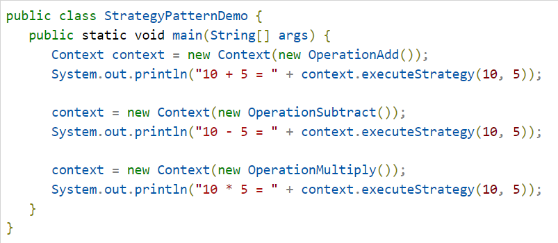 下面将创建表示各种策略的对象和一个行为随着策略对象改变而改变的 context 对象。策略对象改变 context 对象的执行算法。