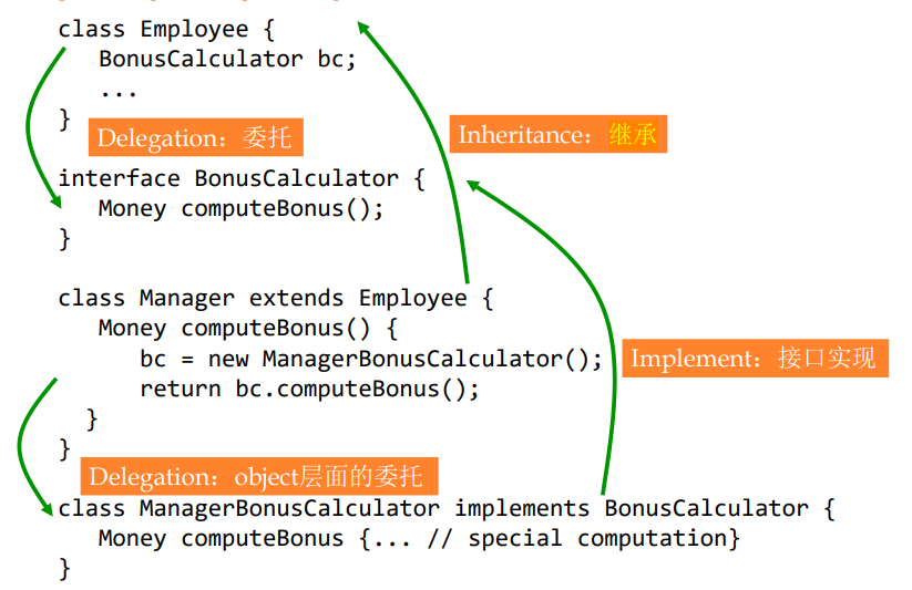 很多设计模式将继承和委托结合使用: