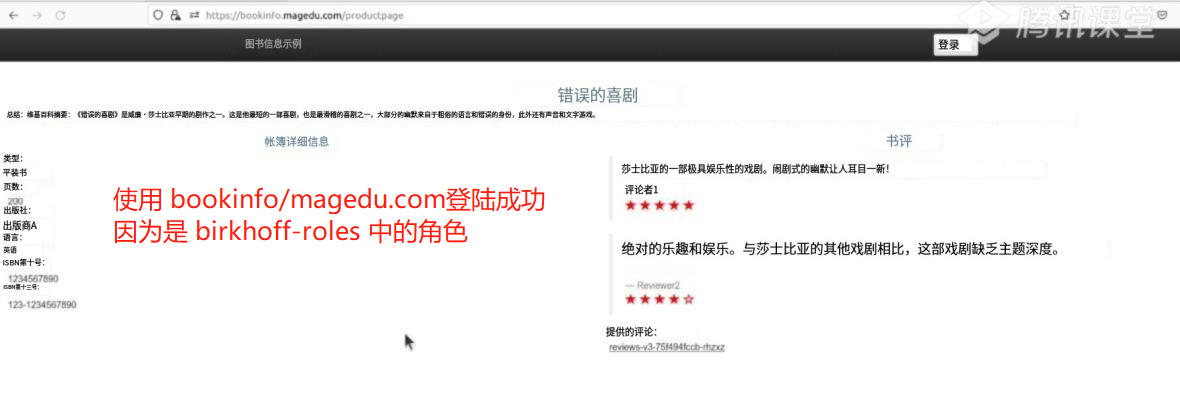 ##此时 使用bookinfo登陆 登陆成功 因为是bookinfo-role 这个角色
