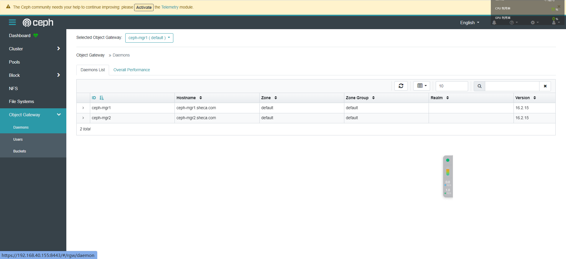 "ceph version 16.2.15 (618f440892089921c3e944a991122ddc44e60516) pacific (stable)": 2