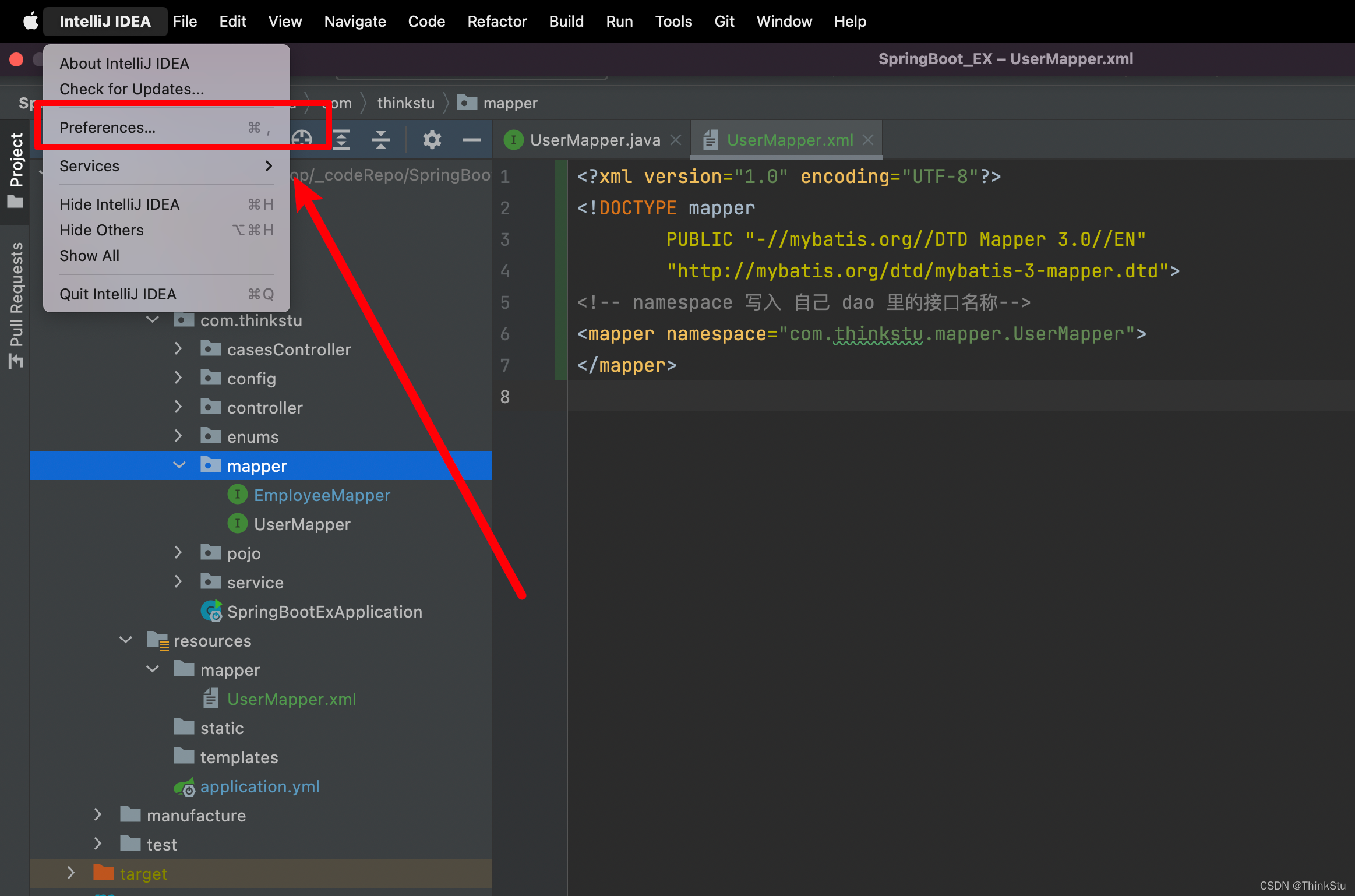 1. 进入 IDEA 的 Preferences (属性设置)