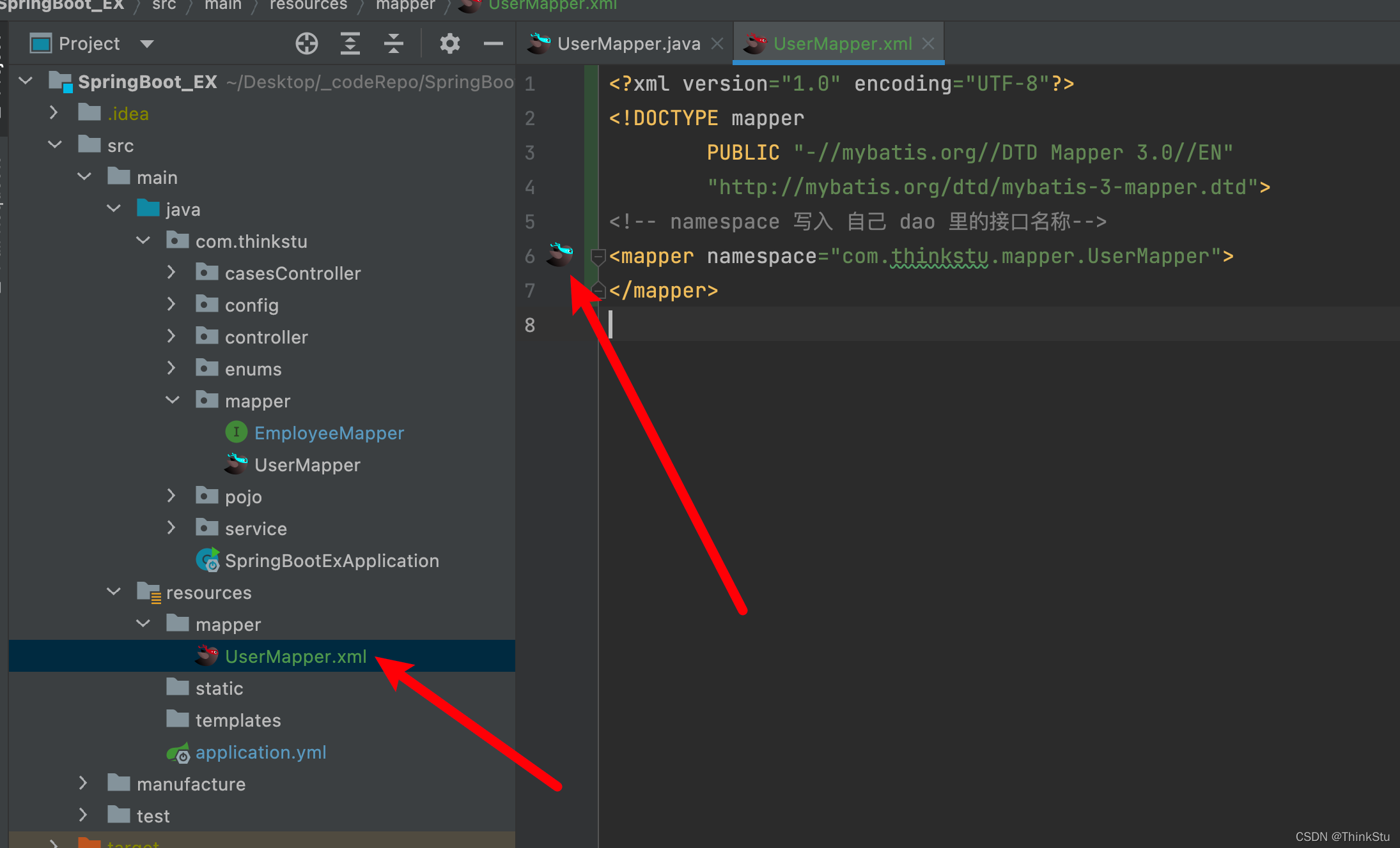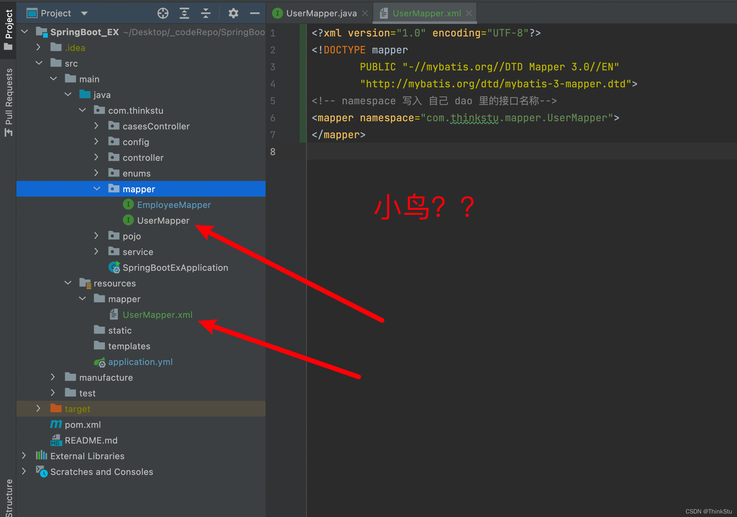 在前前后后捣鼓了一个多小时后,发现这应该是IDEA或者Mybatis X插件的问题。既然IDEA无法自动识别我们写的 xml文件,那么我们就让它识别我们的 xml文件。