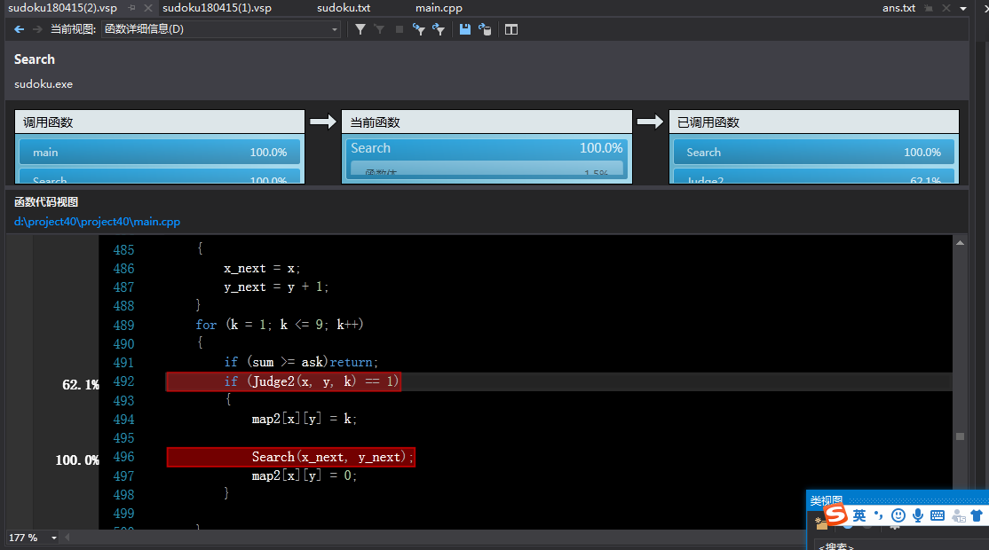 发现主要集中在了不断的判断和搜索回溯中