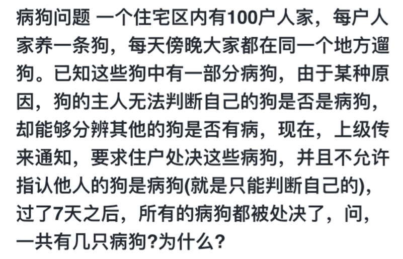 如果只有1只病狗,它的主人会以为小区内没有病狗。