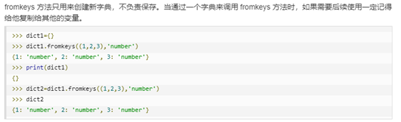 dict.fromkeys([6,7,8],”test”) 初始化一个字典,有三个key 6, 7 ,8且values全部为test