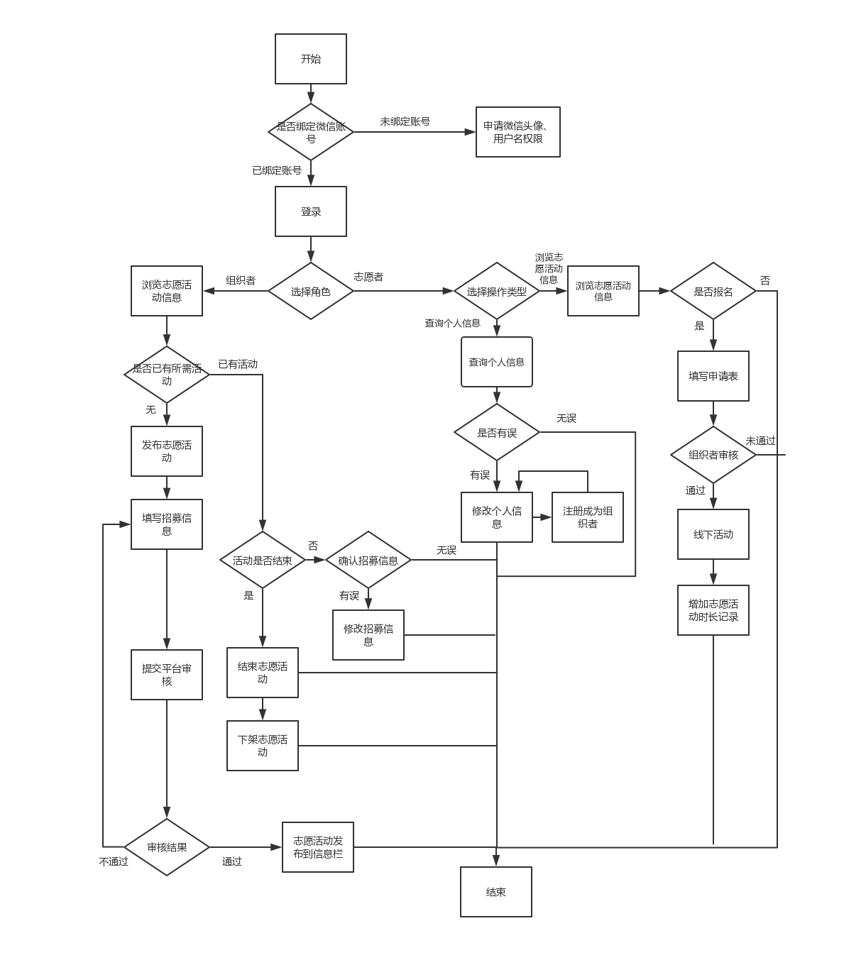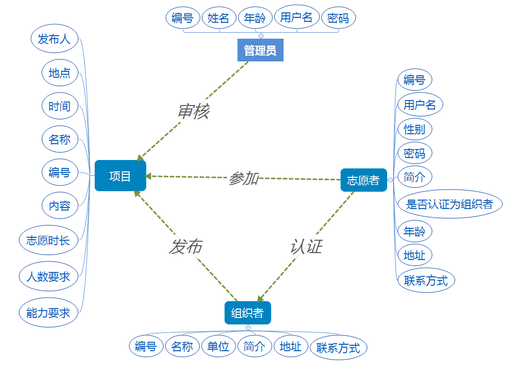 3) 认证:用户注册为志愿者后可经认证成为志愿发布者;