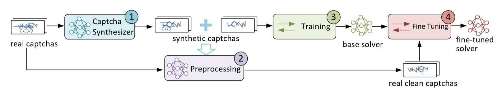 第一个,首次使用生成对抗网络方法自动生成训练数据,构建文本验证码求解器(Text-Based Solvers)