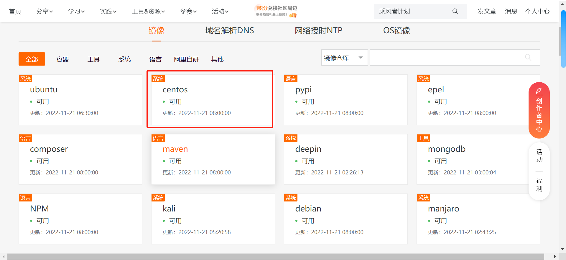 阿里云官方镜像站https://developer.aliyun.com/mirror/,找到自己需要的,如centos7