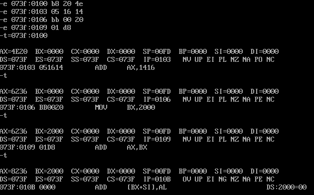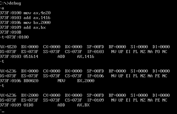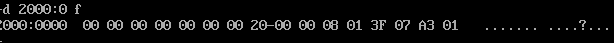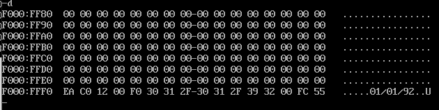 在f000:fff0单元中找到了日期1992年1月1日,但是无法使用e命令对其进行修改,可能因为只是修改了只读存储的内容,并没有改变实际物理地址的内容。