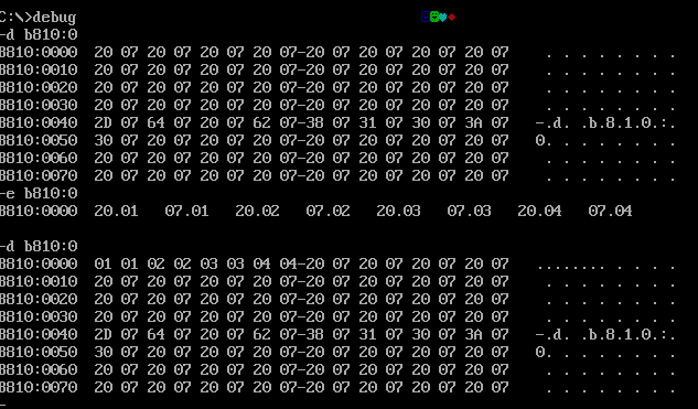 产生图案并改变颜色,在这一段区域的内存单元中写入数据,就是向显存中写入数据,通过显卡输出到显示器上。