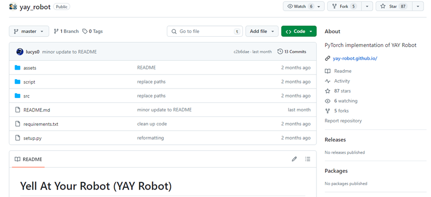 项目地址:https://yay-robot.github.io/