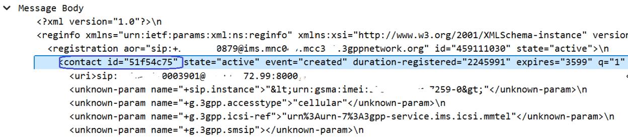 上图中的contact id “51f54c75”就是REGISTER时S-CSCF产生的registration-token值。
